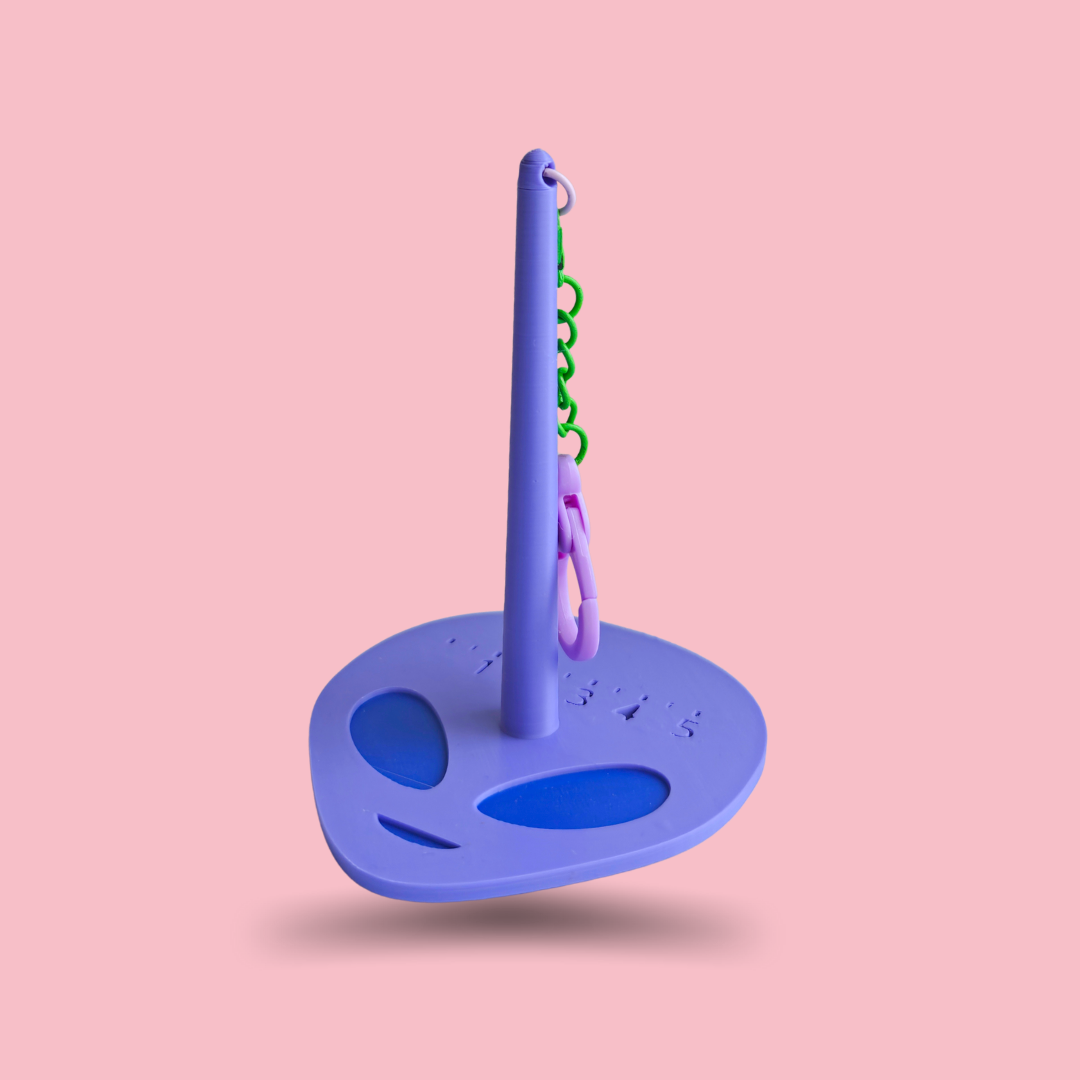 En garnhållare för dig som stickar och är i farten. Fäst den i byxan eller väskan och du får enkelt med dig nystanet. Himla smidigt, även om du så bara går runt hemma och vill ha stickningen med dig. Egen design, printad i min 3D-skrivare.