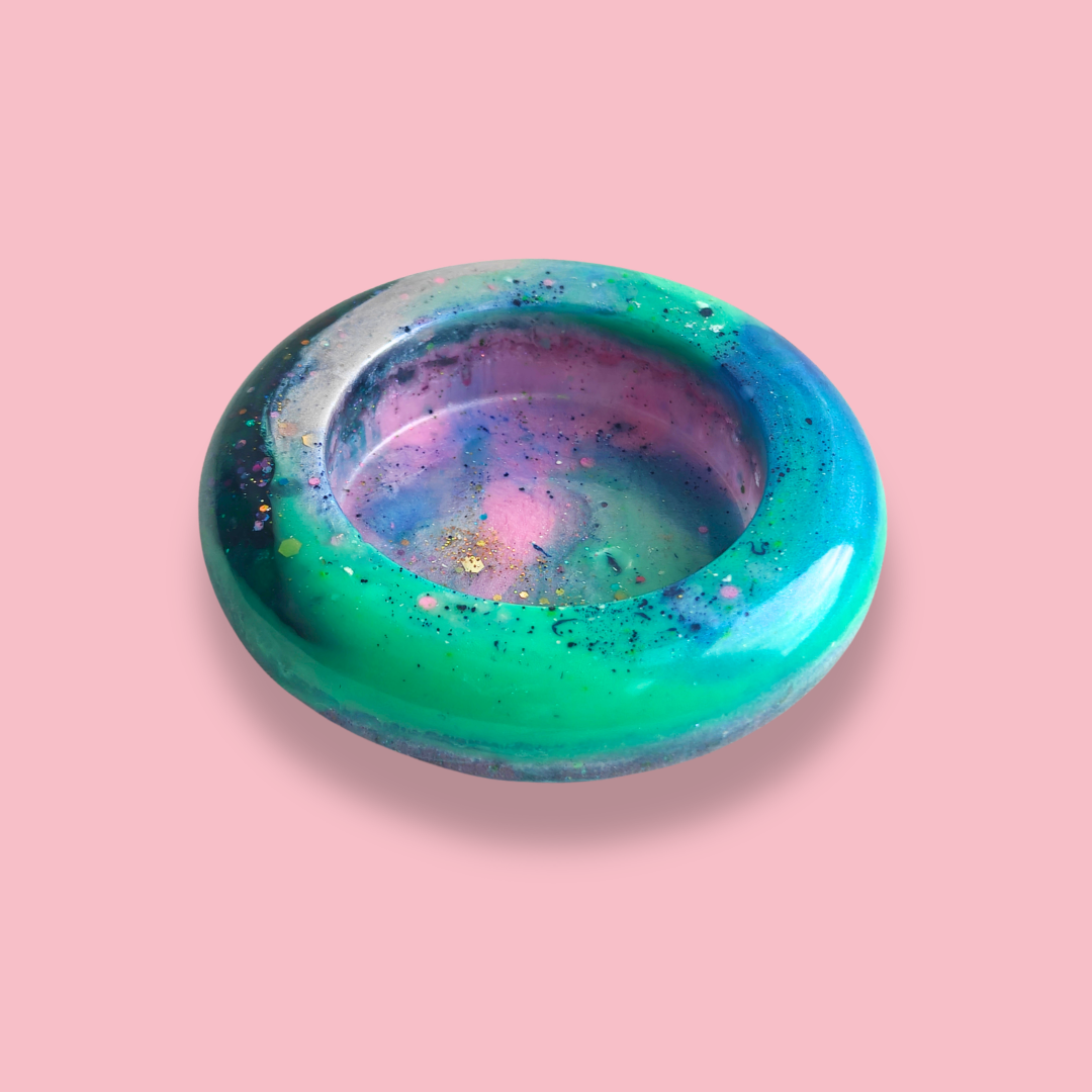 Handgefertigte, farbenfrohe Seifenschalen und Seifenschüsseln aus Epoxidharz (Resin), das hart, langlebig und...