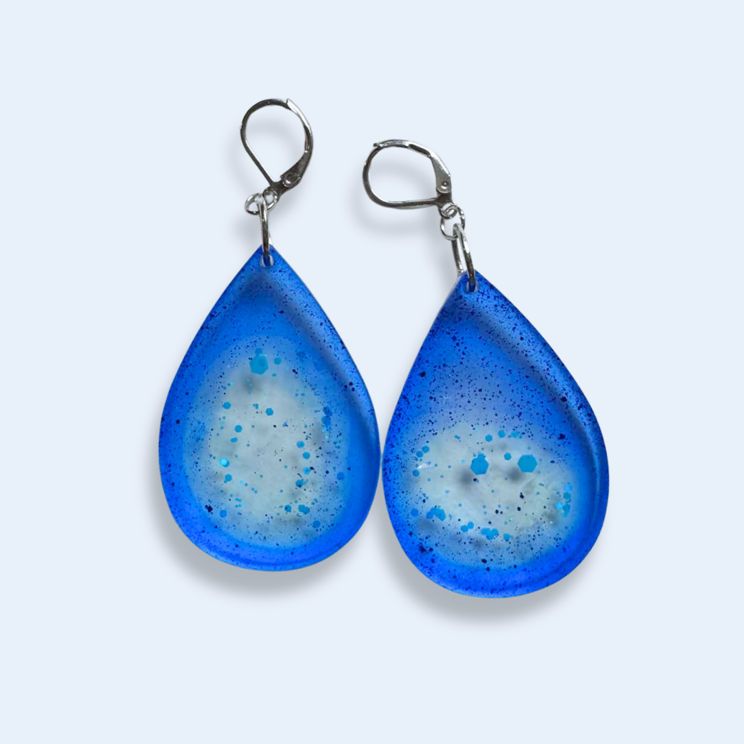 Handgjorda, unika örhängen som jag gjutit i epoxyplast med färger jag tycker om. Krokarna är i nickelfritt rostfritt stål. De väger nästan ingenting och gör dig tuff.