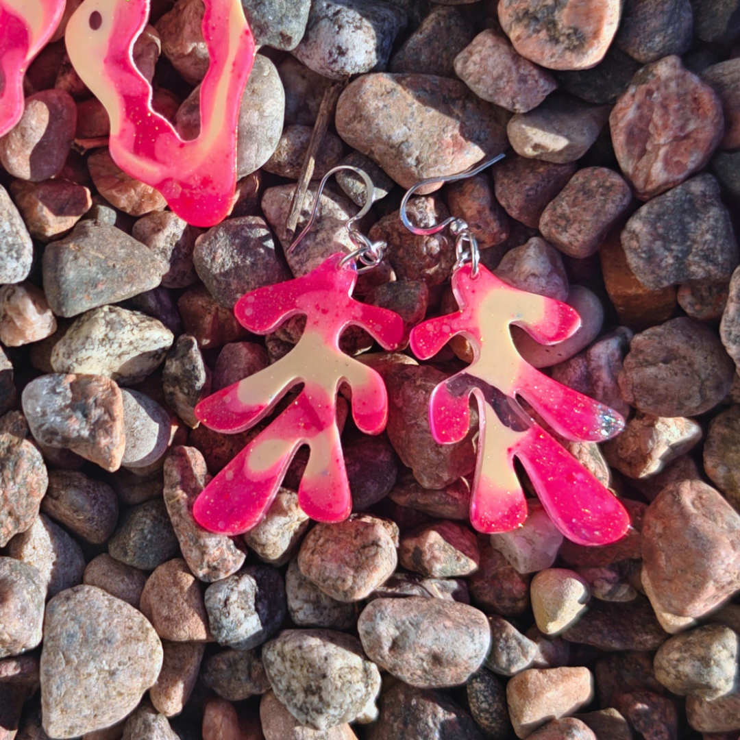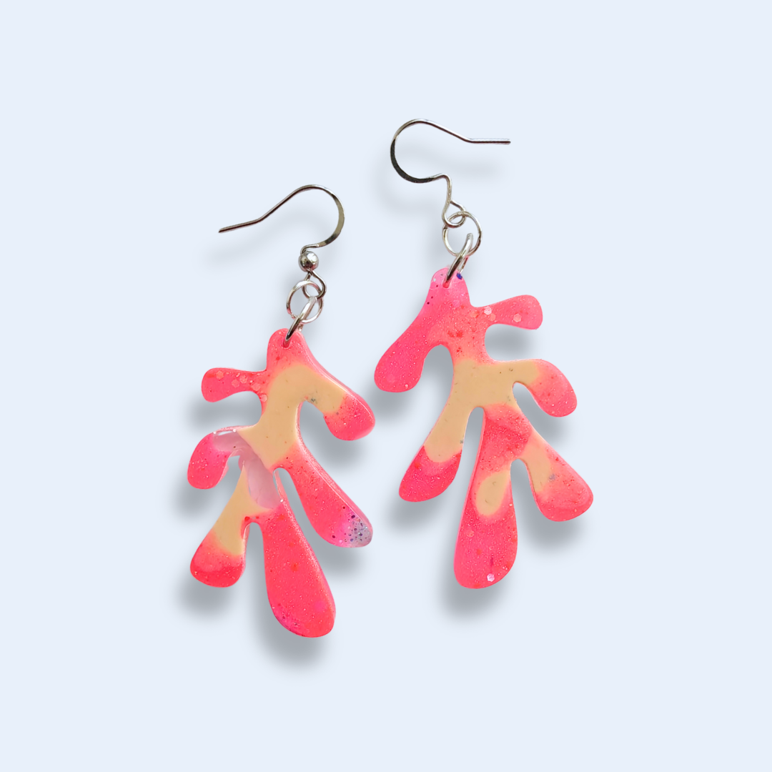 Handgjorda, unika örhängen som jag gjutit i epoxyplast med färger jag tycker om. Stiften är i nickelfritt rostfritt stål. De väger nästan ingenting och gör dig tuff.