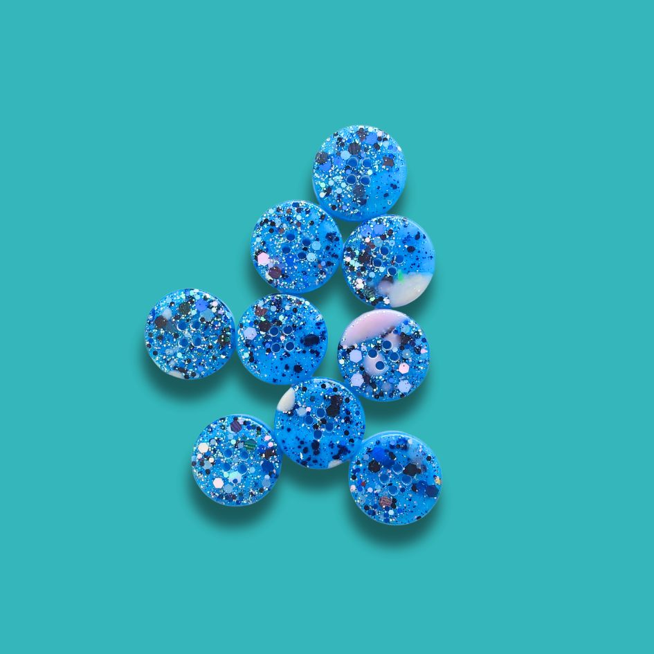 Tuffa plastknappar. Hårda, hållbara och helt unika. Piffar vilken stickad kofta som helst, eller varför inte byta ut knapparna i favoritskjorta? Gjutna för hand i resin av mig och säljs som set.