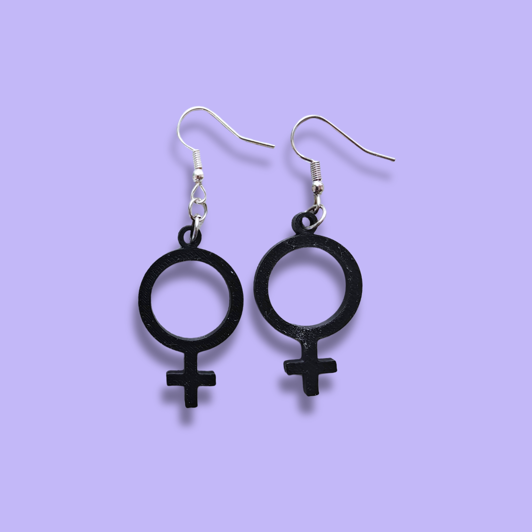 Tjejer är bäst och förtjänar ett samhälle som inte favoriserar män. Stilrena kvinnotecken som bara väger ett gram per par. Krokarna är nickelfria i rostfritt stål. Skapade av mig och min 3D-skrivare.