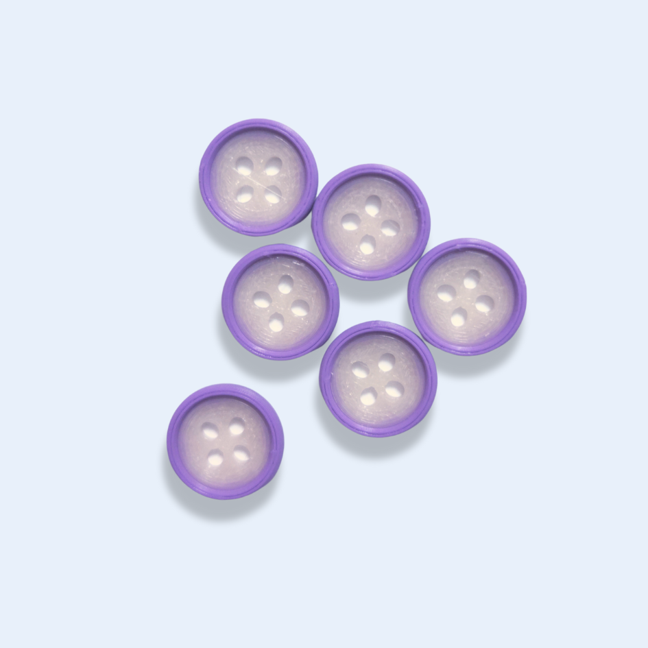 Tuffa plastknappar där det vita blir rosa i solljus. Hårda, hållbara och lätta. Piffar vilken stickad kofta som helst, eller varför inte byta ut knapparna i favoritskjorta? Egen design, utskrivna i min 3D-skrivare.