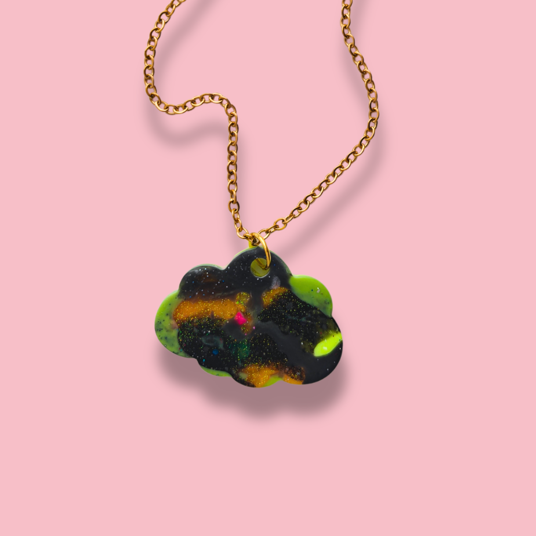 Jag tillverkar mina halsband i epoxy-resinplast som jag färgsatt efter humör och vad jag tycker är fint. Varje halsband är helt unikt. Välj om du vill ha nylonband eller kedja i rostfritt stål.