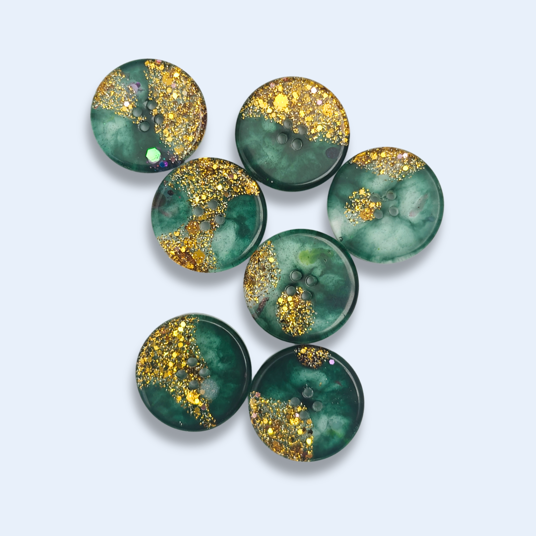 Knappar 25 mm [guld i grön dimma, styckvis]