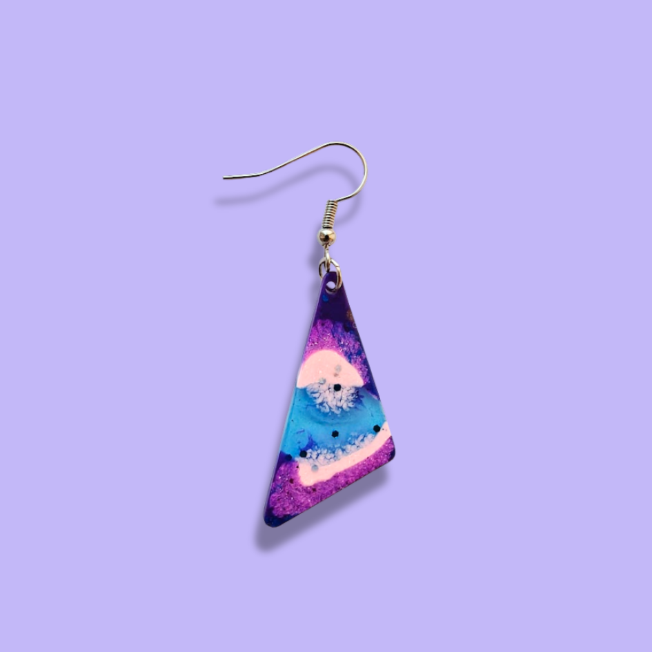 Handgjort, unikt örhänge som jag gjutit i epoxyplast med färger jag tycker om. Kroken är i nickelfritt rostfritt stål. Det väger nästan ingenting och gör dig tuff.