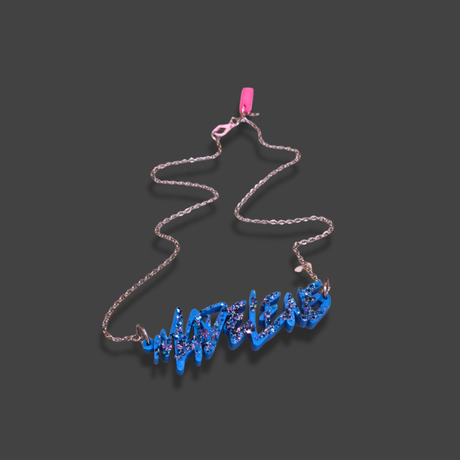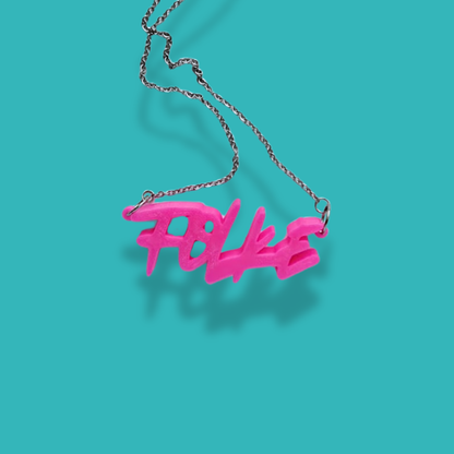 Jag gör ditt halsband efter beställning med min balla 3D-skrivare. Jag har själv gjort designen och jag bygger kedjorna i rostfritt stål själv.