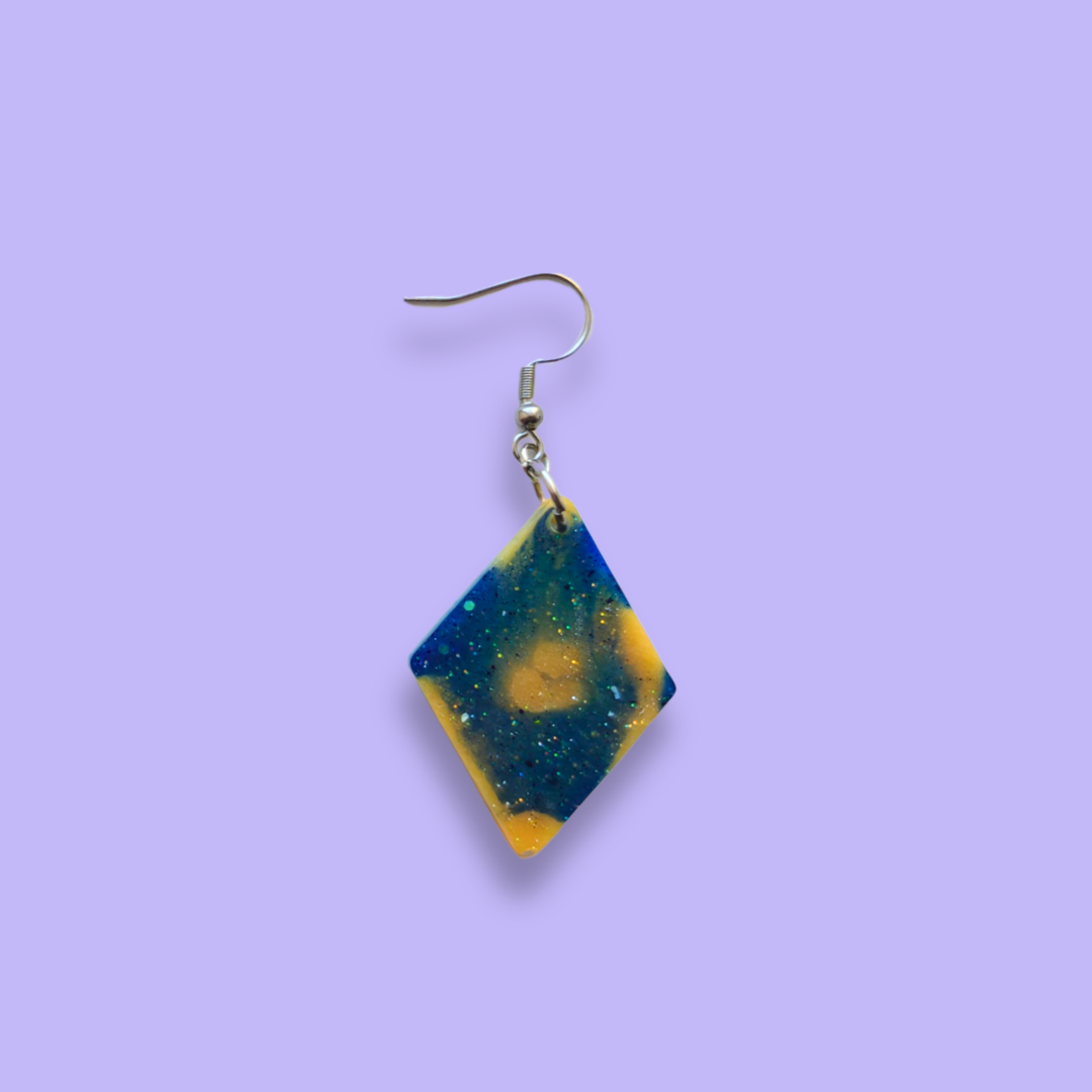 Handgjort, unikt örhänge som jag gjutit i epoxyplast med färger jag tycker om. Kroken är nickelfri i rostfritt stål. Väger nästan ingenting och gör dig tuff.