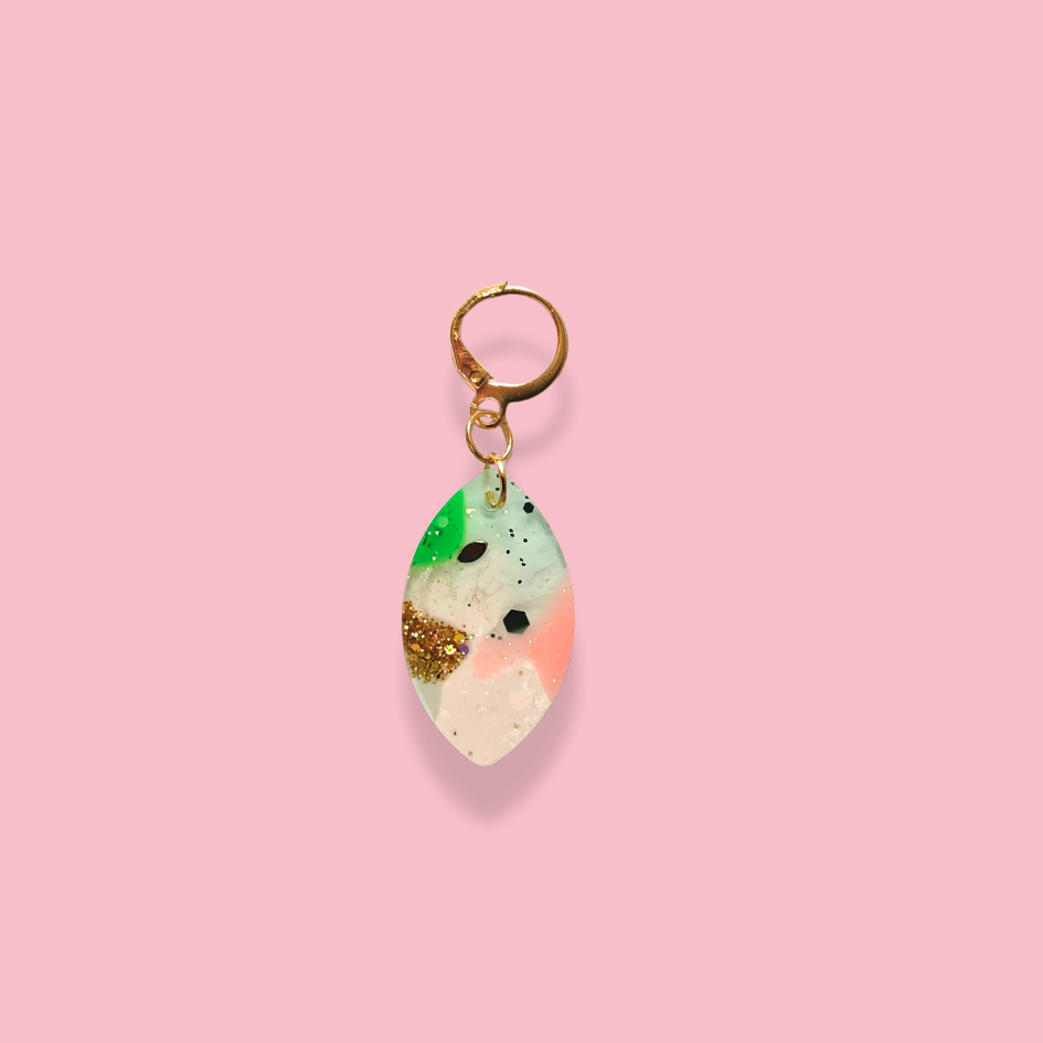 Handgjort, unikt örhänge som jag gjutit i epoxyplast med färger jag tycker om. Kroken är nickelfri i rostfritt stål. Väger nästan ingenting och gör dig tuff.
