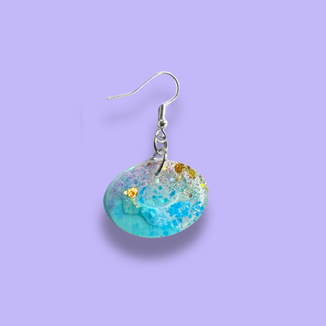 Handgjorda pluttiga örhängen i epoxyplast som jag säljer i färgglada set. Använd...