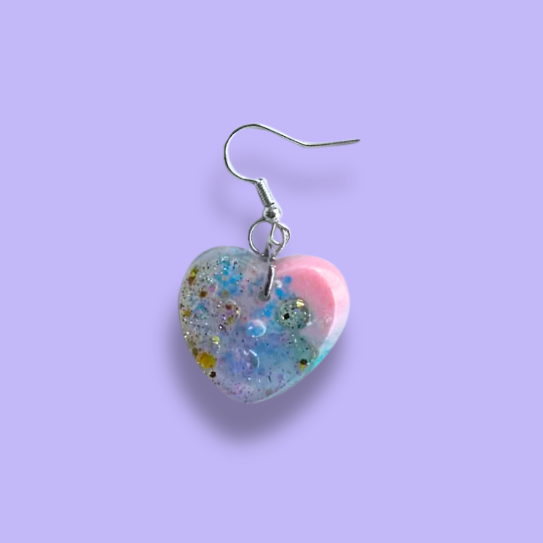 Handgjort unikt örhänge som jag gjutit i epoxyplast med färger jag tycker om. Kroken är i nickelfritt rostfritt stål. Det väger nästan ingenting och gör dig tuff.