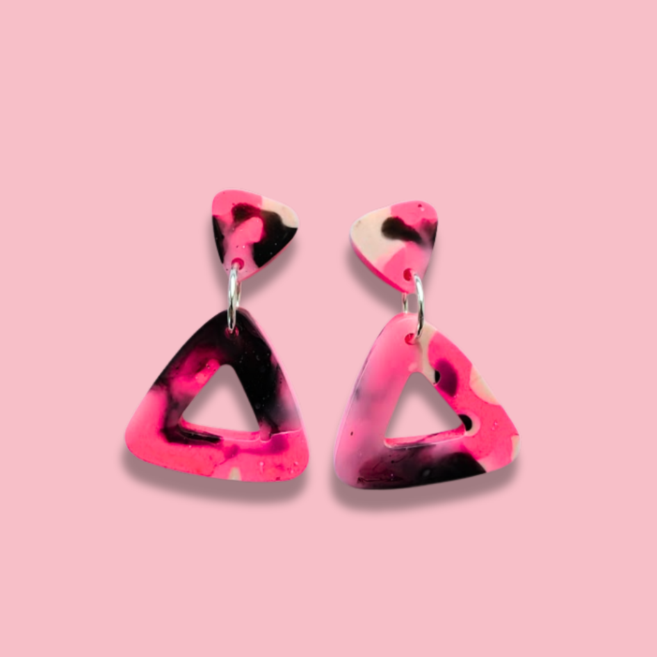 Handgjorda, unika örhängen som jag gjutit i epoxyplast med färger jag tycker om. Stiften på baksidorna är i nickelfritt rostfritt stål. De väger nästan ingenting och gör dig tuff.