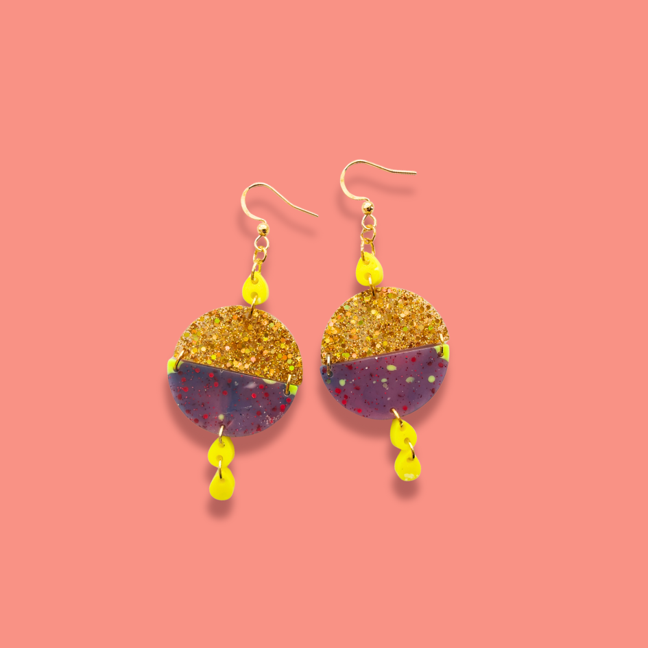 Handgjorda pluttiga örhängen i epoxyplast som jag säljer i färgglada set. Använd...
