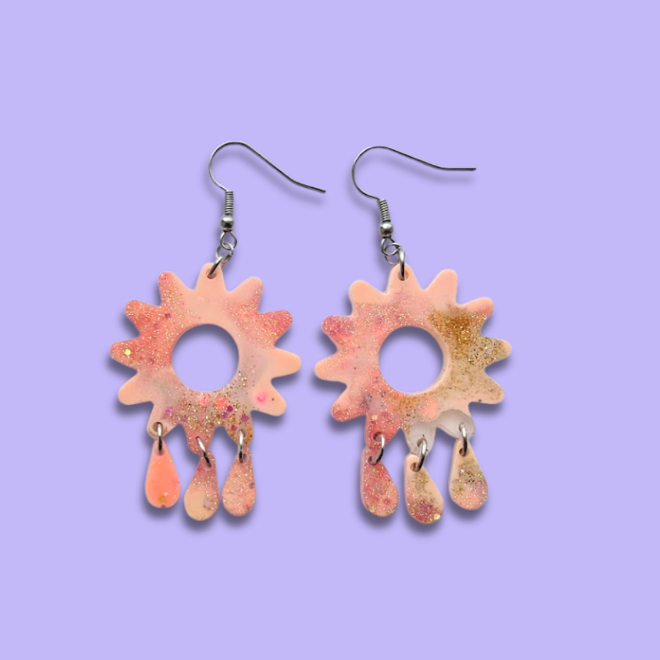 Handgjorda pluttiga örhängen i epoxyplast som jag säljer i färgglada set. Använd...