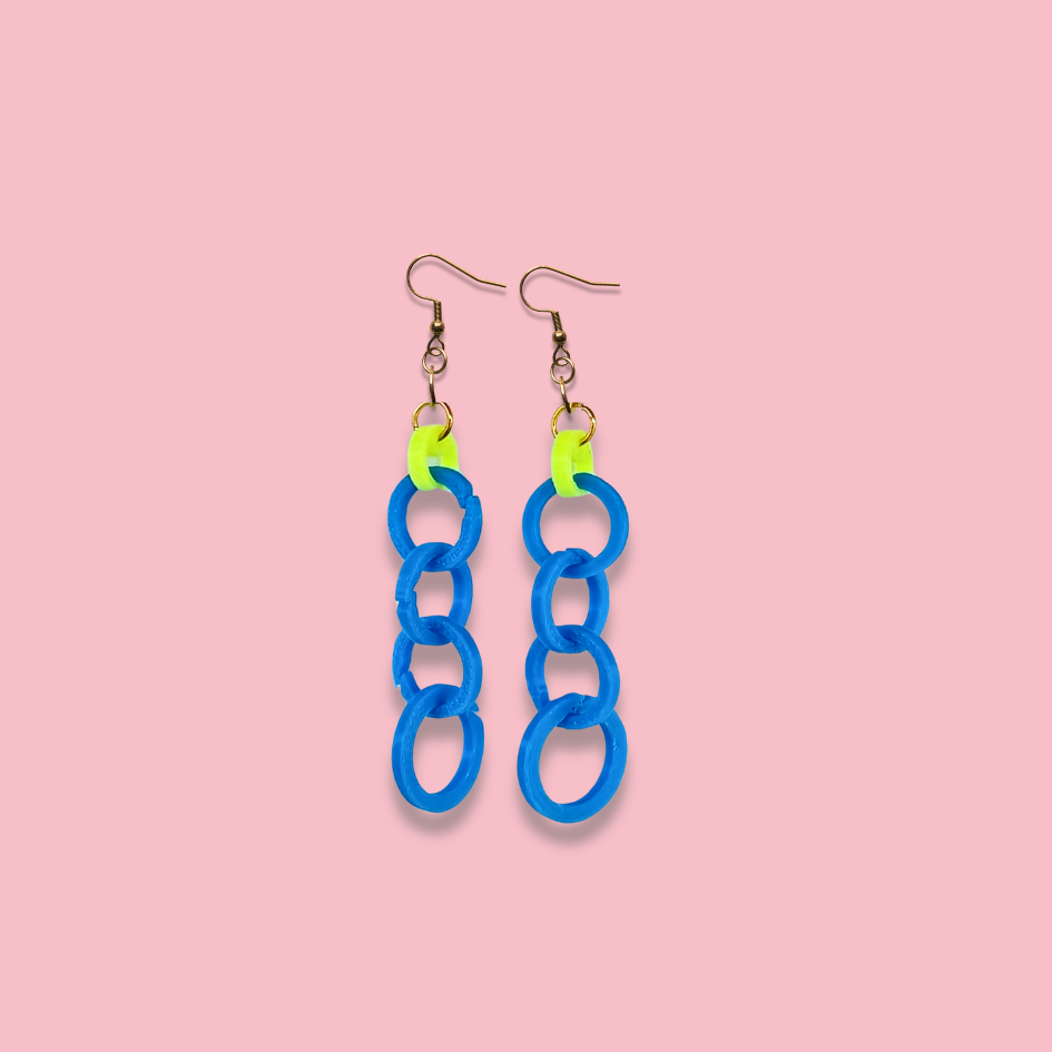 Örhängen som jag designar och 3D-printar. Det väger nästan ingenting och du kommer aldrig mer behöva leta efter en stickmarkör. Varje par består av 4+4 stickmarkörer i olika storlekar. Du plockar enkelt loss dem från varandra, och sätter ihop på samma enkla vis.