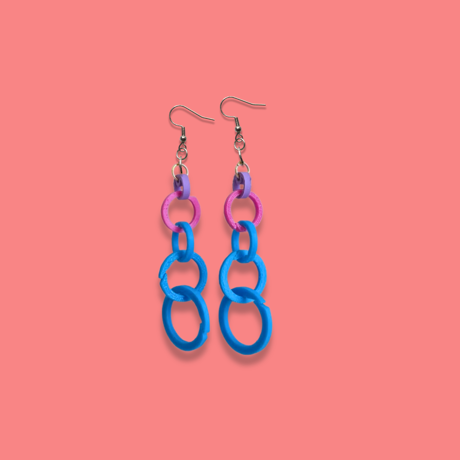 Örhängen som jag designar och 3D-printar. Det väger nästan ingenting och du kommer aldrig mer behöva leta efter en stickmarkör. Varje par består av 4+4 stickmarkörer i olika storlekar. Du plockar enkelt loss dem från varandra, och sätter ihop på samma enkla vis.