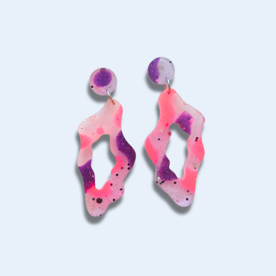 Handgjorda, unika örhängen som jag gjutit i epoxyplast med färger jag tycker om. Stiften är i nickelfritt rostfritt stål. De väger nästan ingenting och gör dig tuff.