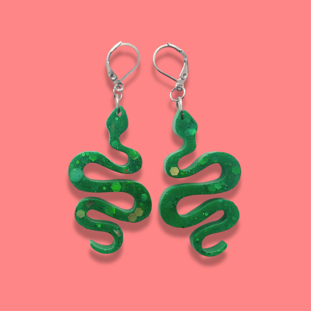 Handgjorda, unika örhängen som jag gjutit i epoxyplast med färger jag tycker om. Krokarna är i nickelfritt rostfritt stål. De väger nästan ingenting och gör dig tuff.
