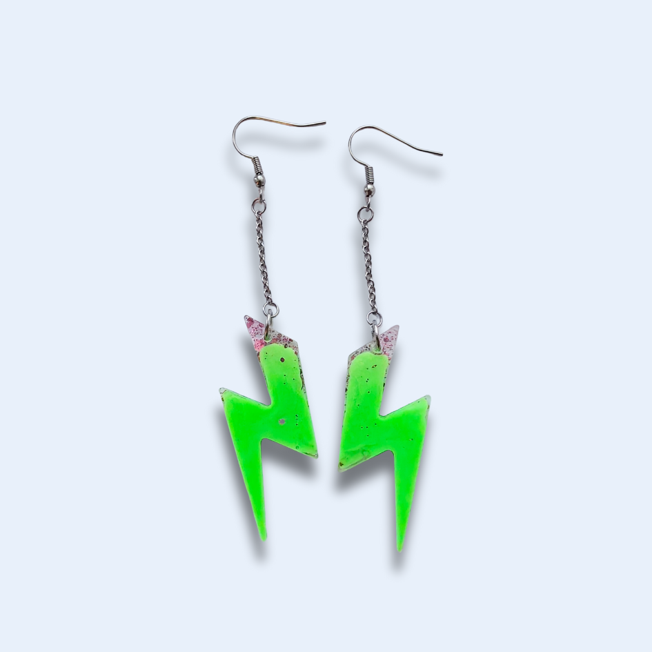 Handgjorda, unika örhängen som jag gjutit i epoxyplast med färger jag tycker om. Krokarna är i nickelfritt rostfritt stål. De väger nästan ingenting och gör dig tuff.