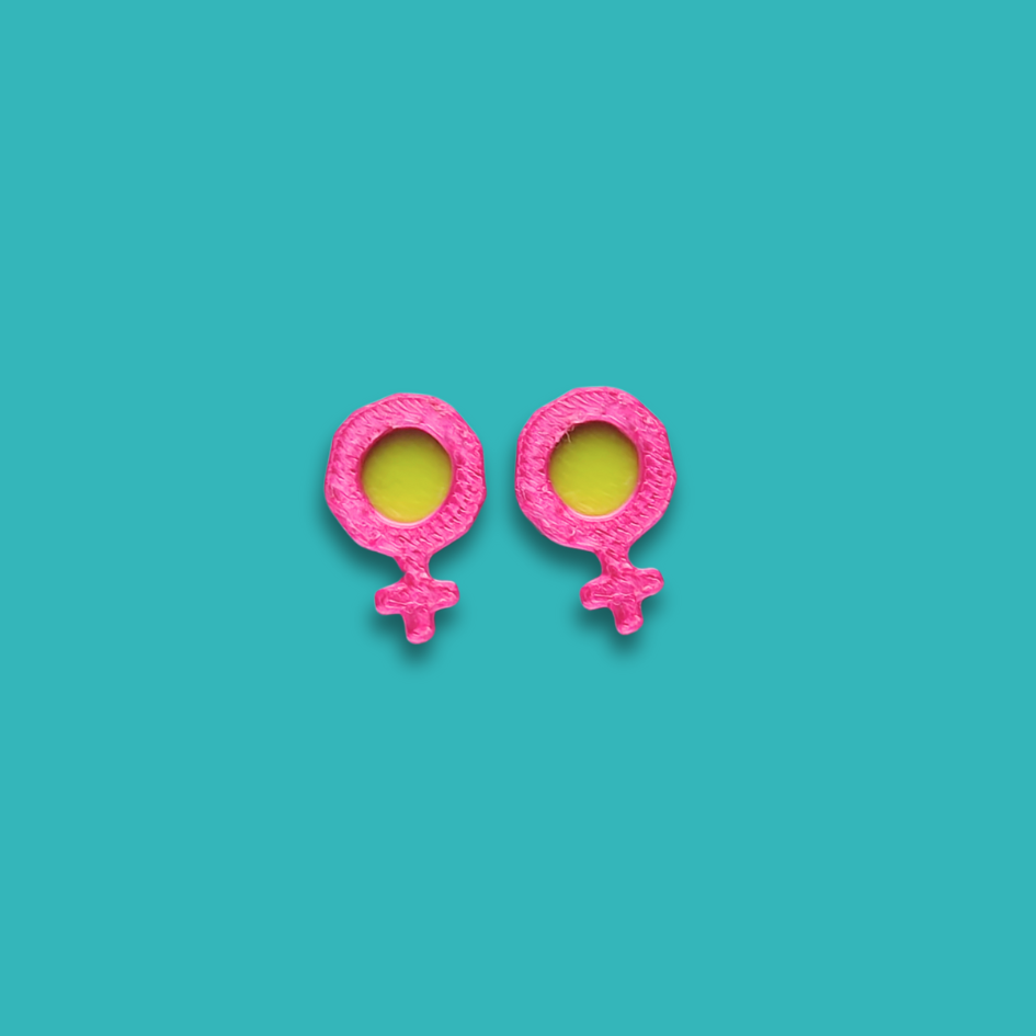 Små kvinnotecken. Egen design, utskrivna i 3d-skrivare i nedbrytbar PLA-plast. Stiften är nickelfria i rostfritt stål.