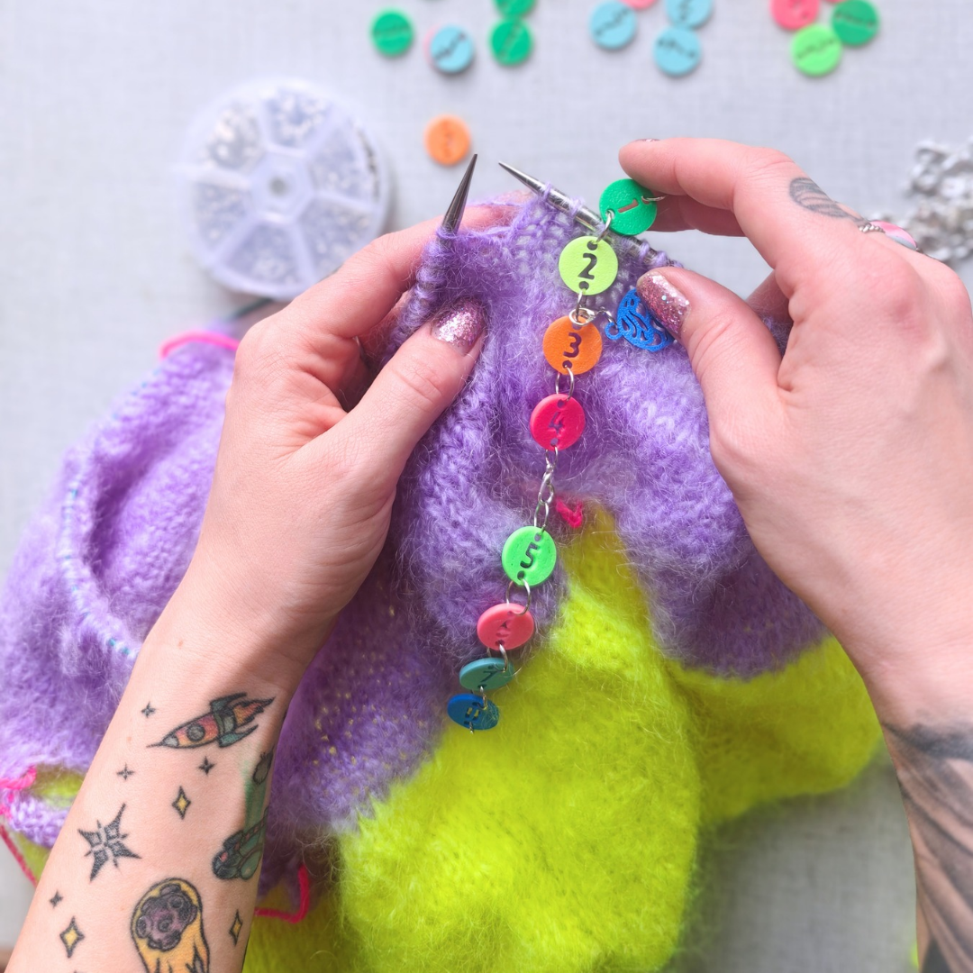 En fiffig varvräknare som gör det enklare att hålla reda på ett antal varv och moment som ska upprepas i stickningen.