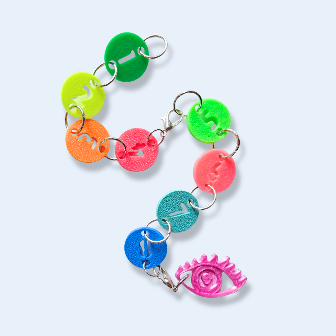 Varvräknaren är min egen design och jag skriver ut den i min 3D-skrivare i nedbrytbar PLA-plast och monterar med ringar av nickelfritt rostfritt stål. Den väger bara 5 gram.